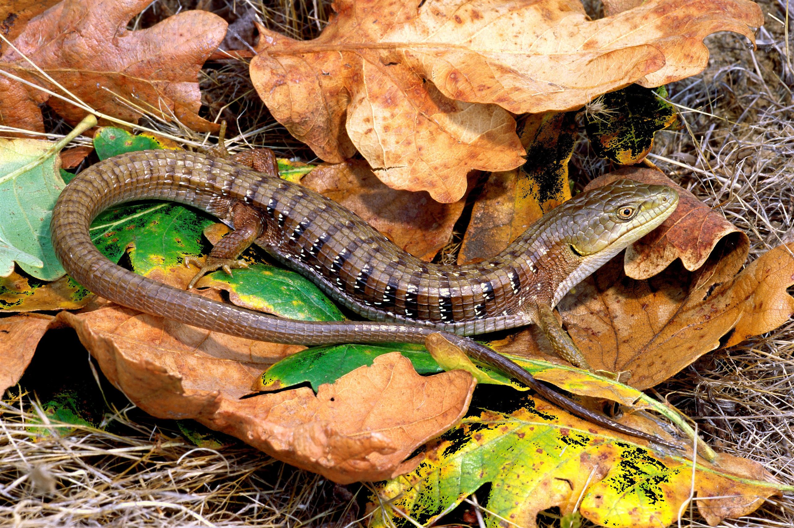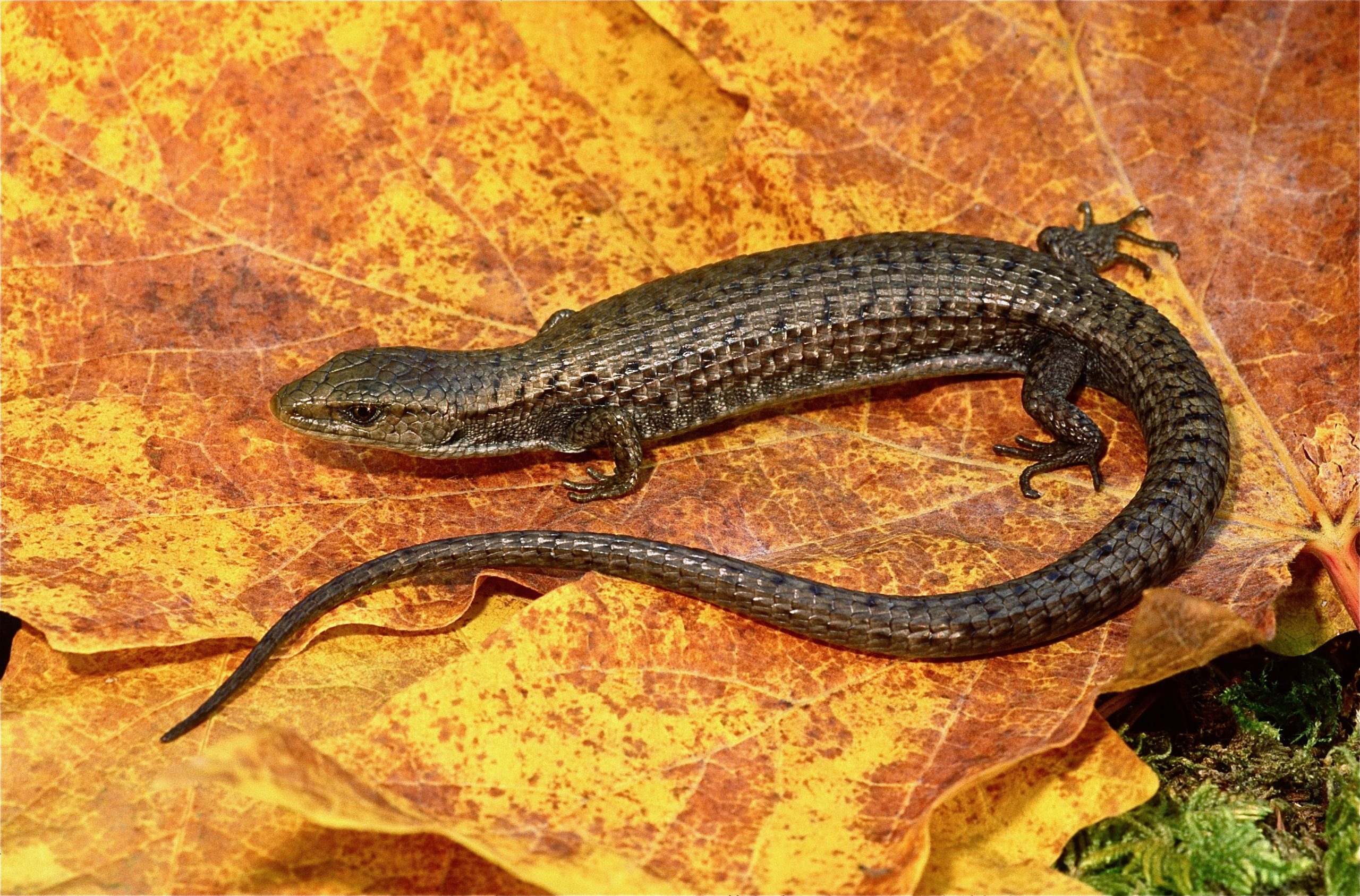 A truly Pacific Northwest reptile that inhabits openings in mountain coniferous forests, and is the only lizard species along our region’s northerly coast. As an adaptation to shady, cool environments, it is live-bearing (viviparous). This allows pregnant females to aid embryonic development of their young by seeking sun-warmed spots among trees. Can be differentiated from the closely-related Southern Alligator Lizard by eye color. Northerns have dark amber-brown eyes, whereas the Southern’s eyes are light golden-yellow.