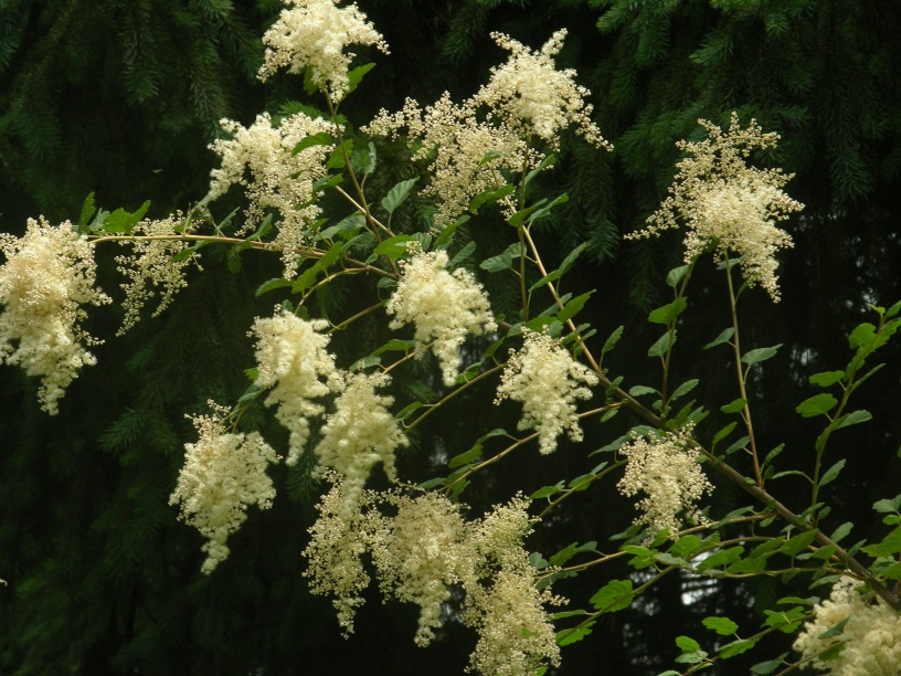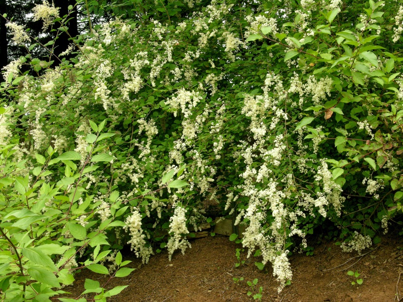 ID Notes: Upright multi-stemmed shrub. Plumes of white flowers in mid- summer. Flowers quickly turn brown and persist into fall. Leaves are somewhat similar to a tiny oak leaf with a grayish cast.