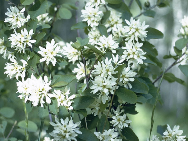 Easy to grow small tree/large shrub that forms thickets. White flowers and bluish black berries which birds feed upon.